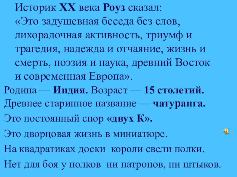 Родина — Индия. Возраст — 15 столетий. Древнее старинное название — чатуранга.