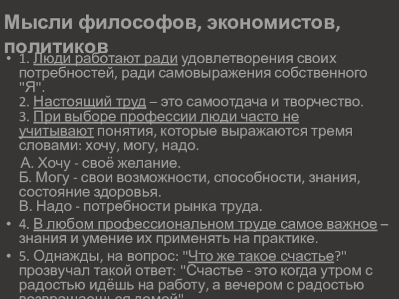 3. При выборе профессии люди часто не учитывают понятия, которые выражаются тремя словами: хочу, могу, надо.