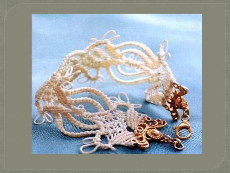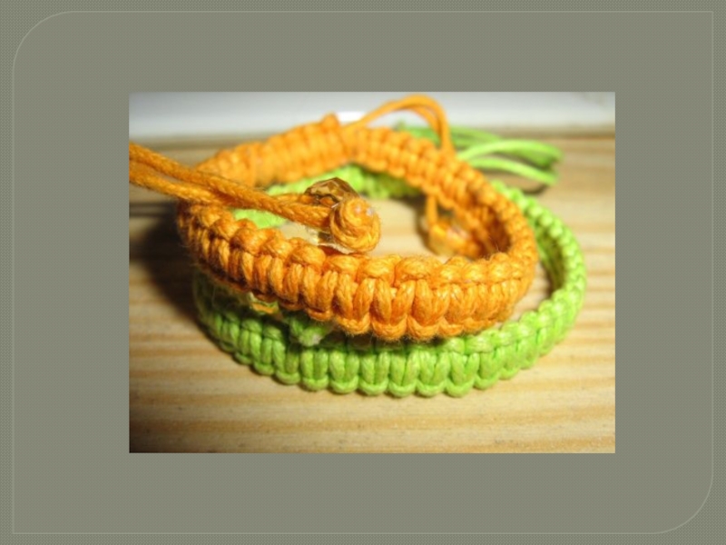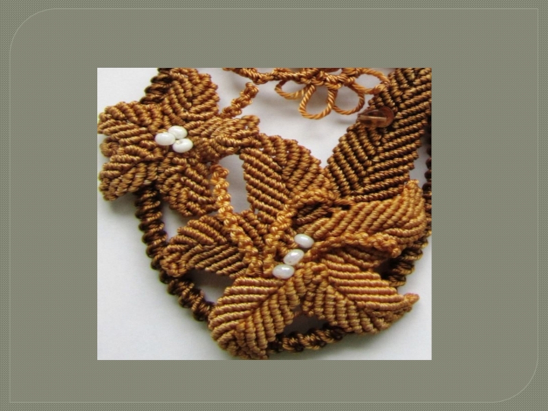 Слайд 6Со временем плетеные из узелков изделия стали разновидностью украшений, первые из которых появились