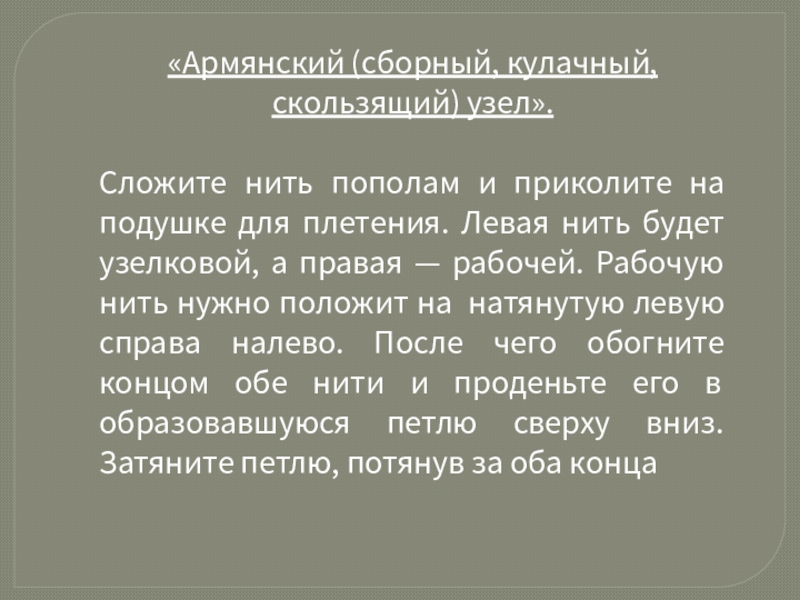 Слайд 18«Армянский (сборный, кулачный, скользящий) узел».