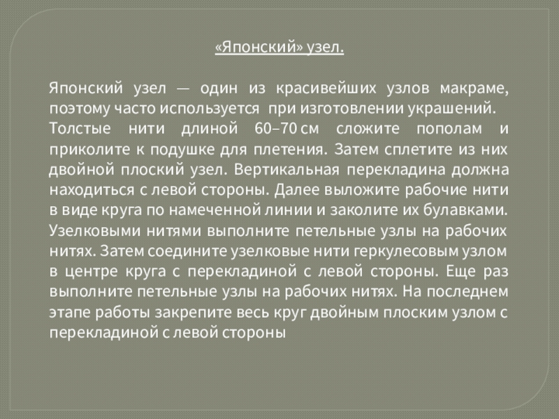 Японский узел — один из красивейших узлов макраме, поэтому часто