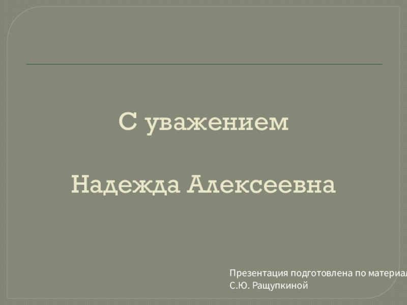 Презентация подготовлена по материалам С.Ю. Ращупкиной