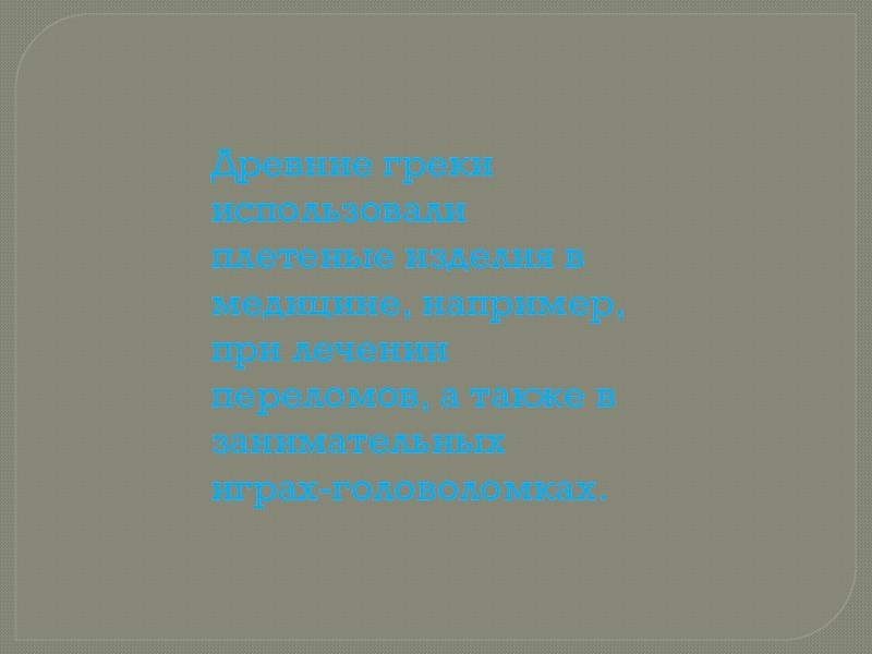 Слайд 3Древние греки использовали плетеные изделия в медицине, например, при лечении переломов,