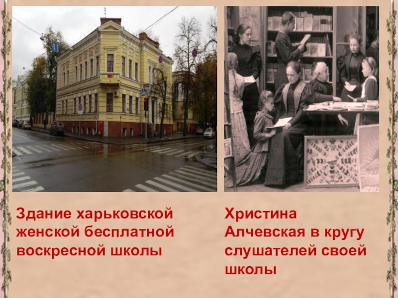 Здание харьковской женской бесплатной воскресной школыХристина Алчевская в кругу слушателей своей школы