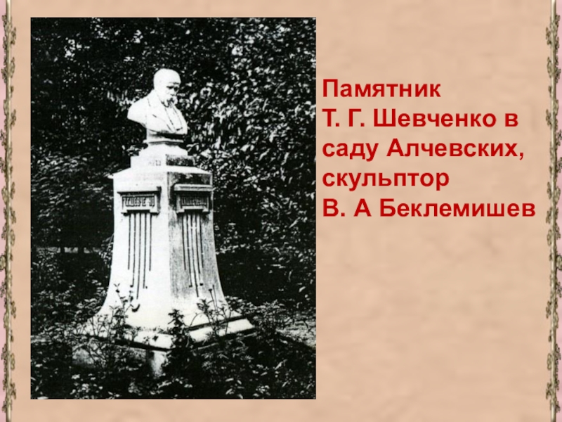 Памятник Т. Г. Шевченко в саду Алчевских, скульпторВ. А Беклемишев