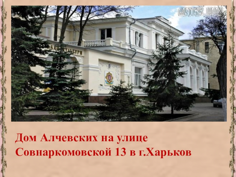 Слайд 2Дом Алчевских на улице Совнаркомовской 13 в г.Харьков
