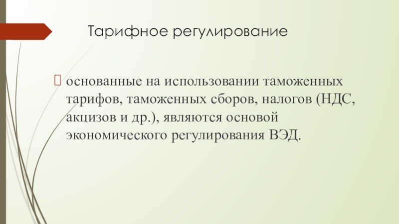Слайд 7Государственное регулирование ВЭД – это система мер законодательного, исполнительного и контролирующего