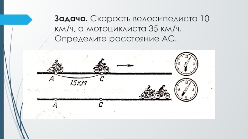 Задача. Скорость велосипедиста 10 км/ч, а мотоциклиста 35 км/ч. Определите расстояние АС.