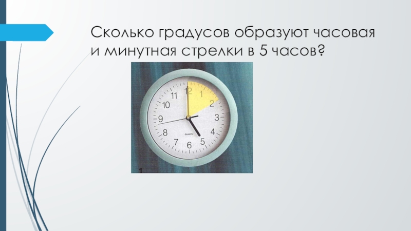Слайд 6Сколько градусов образуют часовая и минутная стрелки в 5 часов?