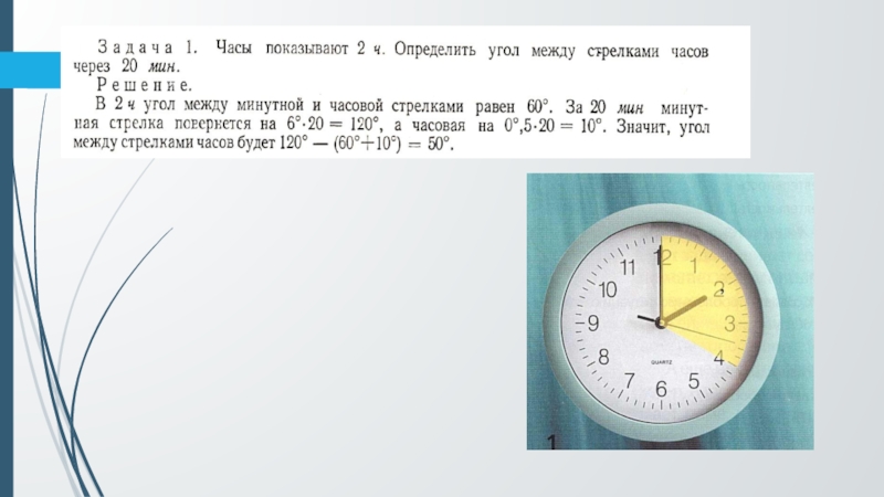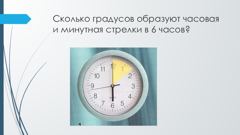 Слайд 2Сколько градусов образуют часовая и минутная стрелки в 1 час?