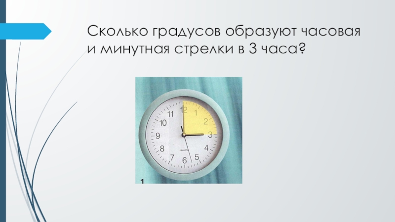 Слайд 4Сколько градусов образуют часовая и минутная стрелки в 3 часа?