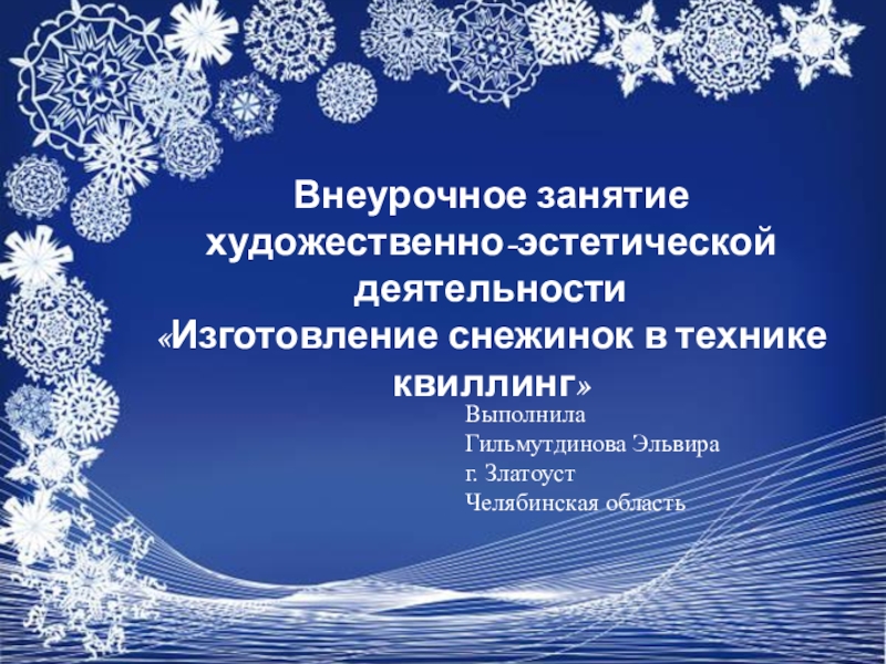 Внеурочное занятие  художественно-эстетической деятельности«Изготовление снежинок в технике квиллинг»ВыполнилаГильмутдинова Эльвираг. ЗлатоустЧелябинская область