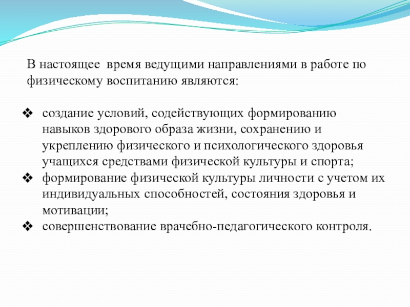 Слайд 16В настоящее время ведущими направлениями в работе по физическому воспитанию являются: