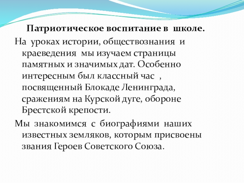 Патриотическое воспитание в школе.На уроках истории, обществознания и краеведения мы изучаем страницы памятных и