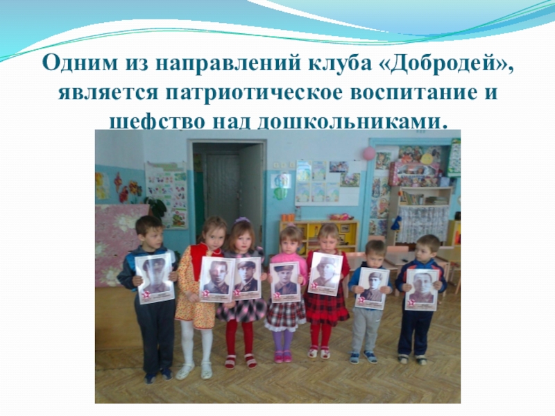 Одним из направлений клуба «Добродей», является патриотическое воспитание и шефство над дошкольниками.