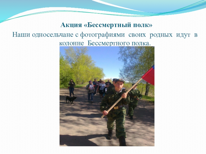 Слайд 11 Акция «Бессмертный полк» Наши односельчане с фотографиями своих родных идут в