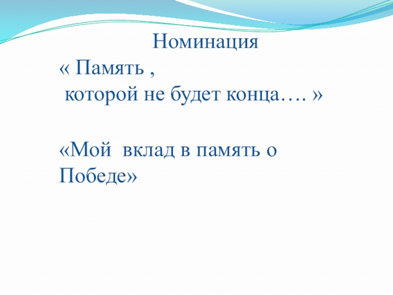 Номинация« Память , которой не будет конца…. » «Мой вклад в память о Победе»