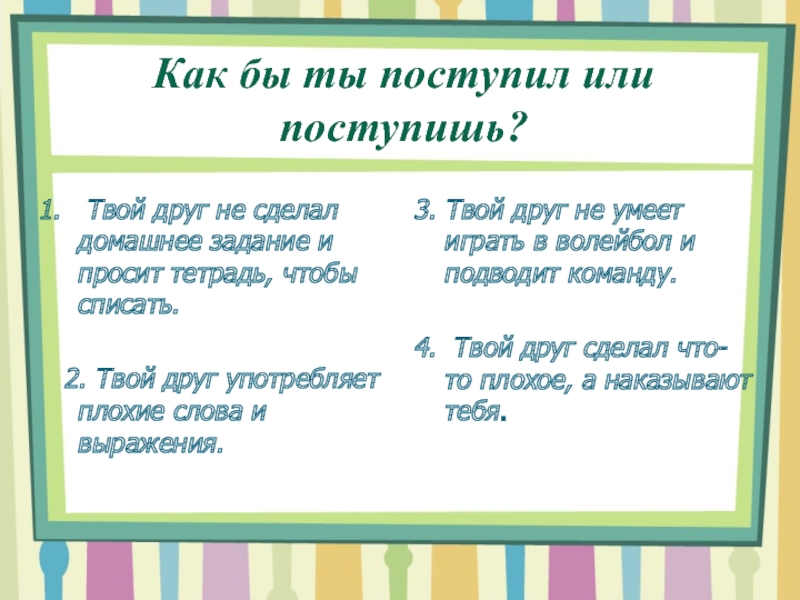 3. Твой друг не умеет играть в волейбол и подводит команду.