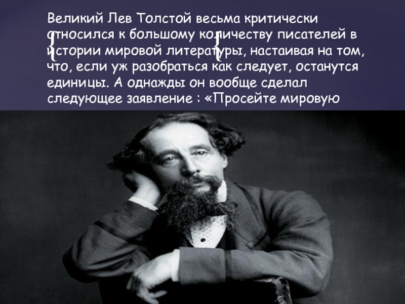 Слайд 12Великий Лев Толстой весьма критически относился к большому количеству писателей в