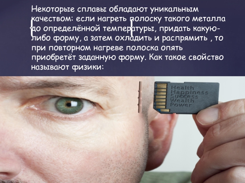 Слайд 13Некоторые сплавы обладают уникальным качеством: если нагреть полоску такого металла до