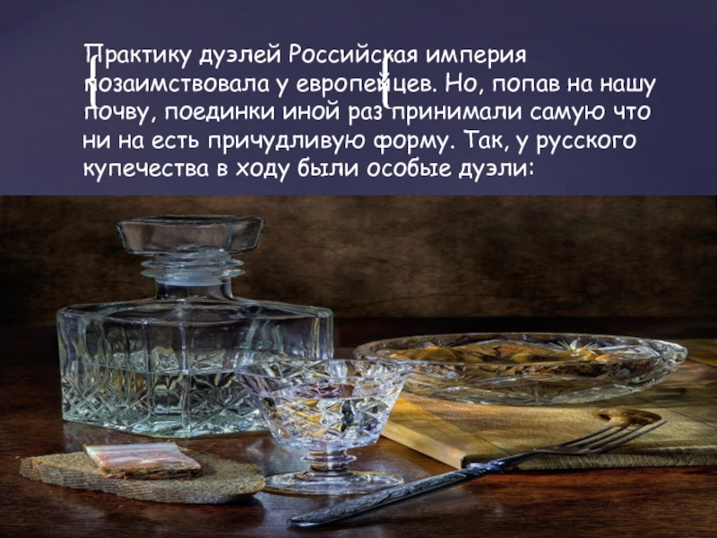 Слайд 3Практику дуэлей Российская империя позаимствовала у европейцев. Но, попав на нашу