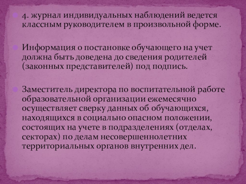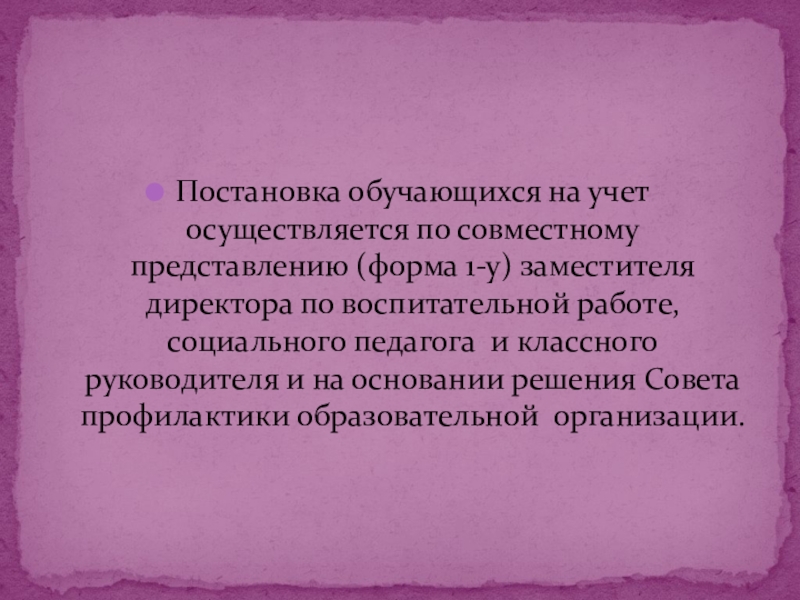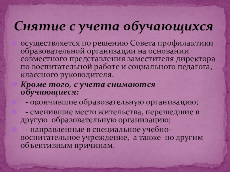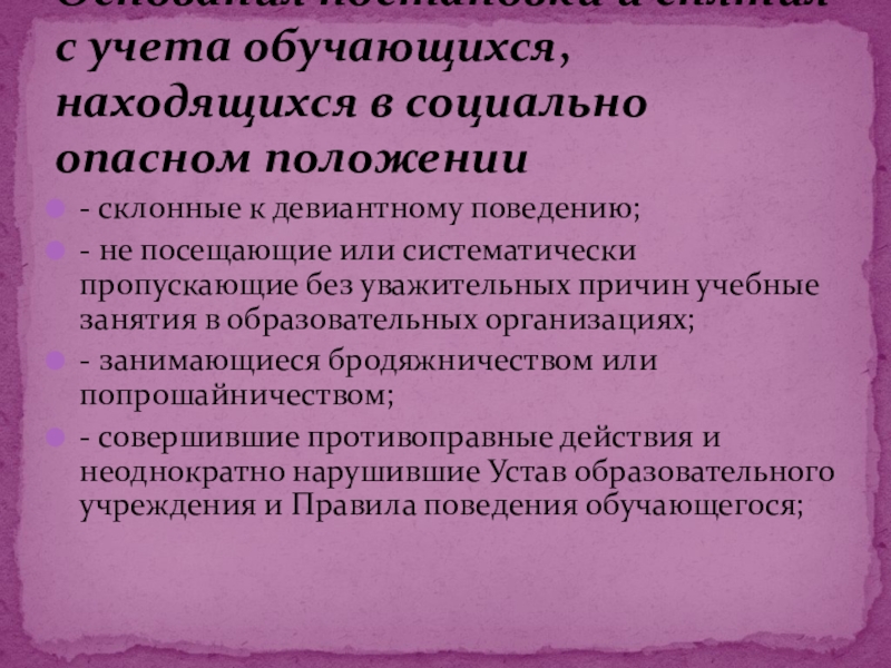 Основания постановки и снятия с учета обучающихся, находящихся в социально опасном положении
