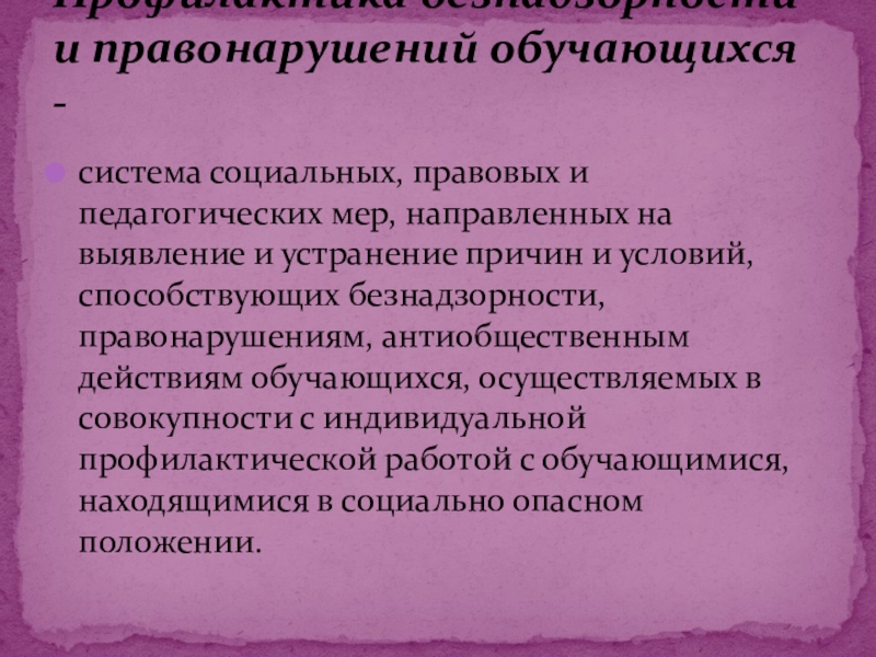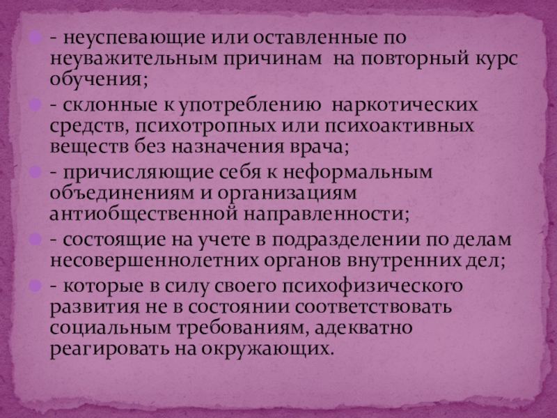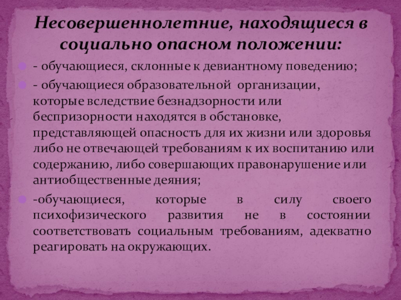 Несовершеннолетние, находящиеся в социально опасном положении: