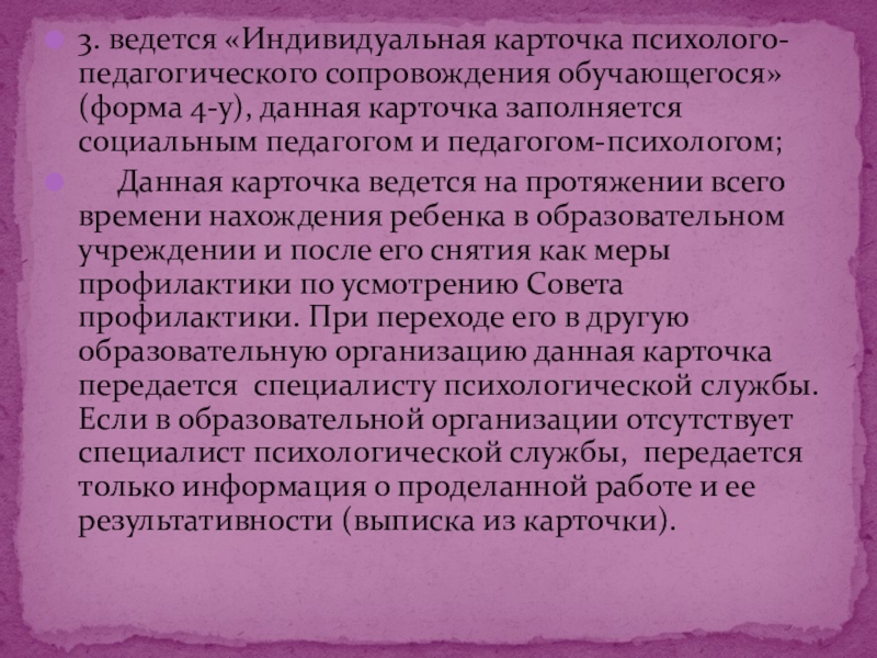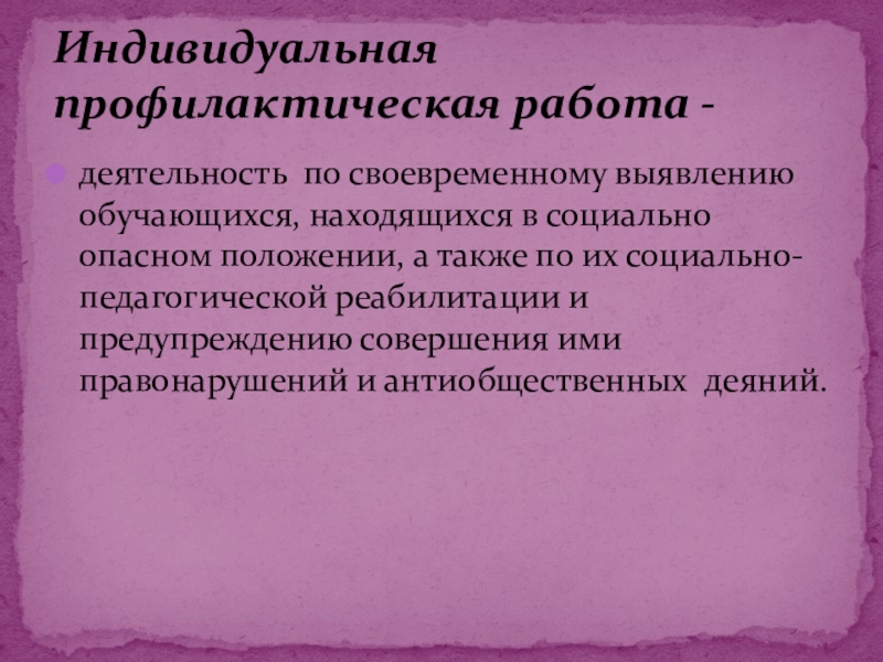 Индивидуальная профилактическая работа -