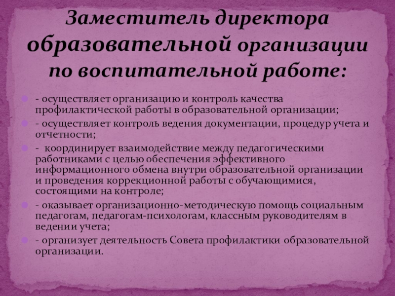 Заместитель директора образовательной организации по воспитательной работе:
