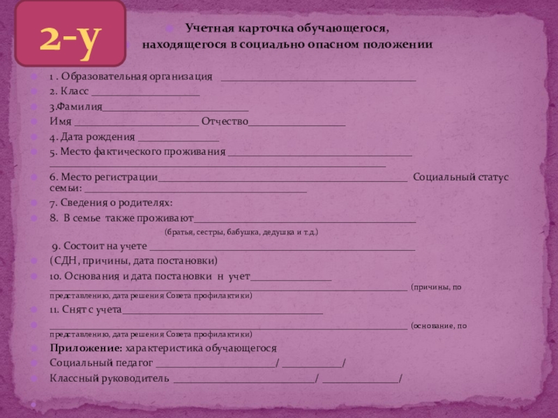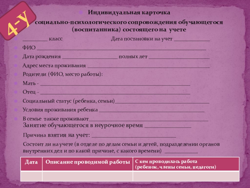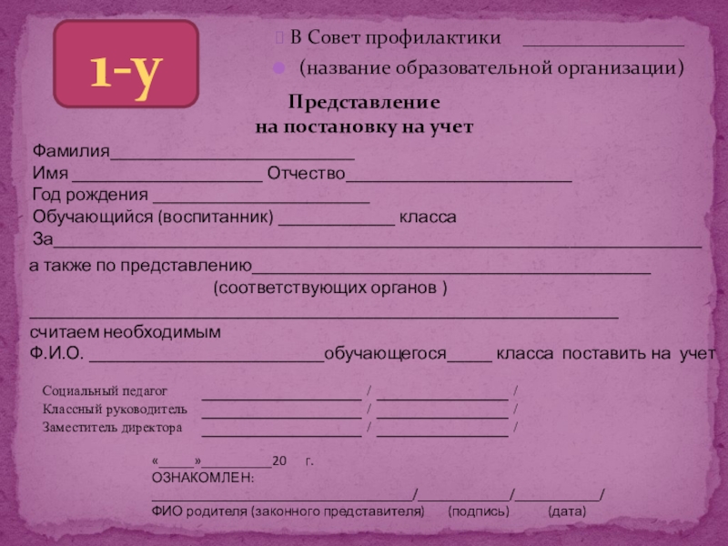Ф.И.О. __________________________обучающегося_____ класса поставить на учет