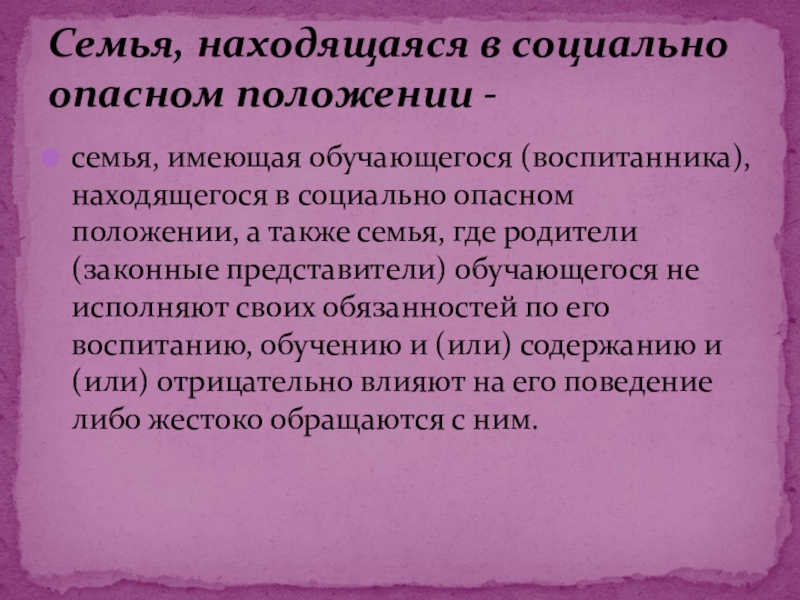 Семья, находящаяся в социально опасном положении -