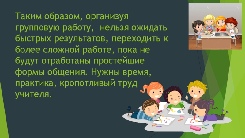 Лучше всего дети работают вместе, если каждый имеет определенную роль при выполнении задания