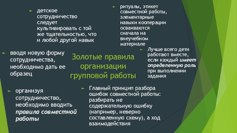 организуя сотрудничество, необходимо вводить правила совместной работы