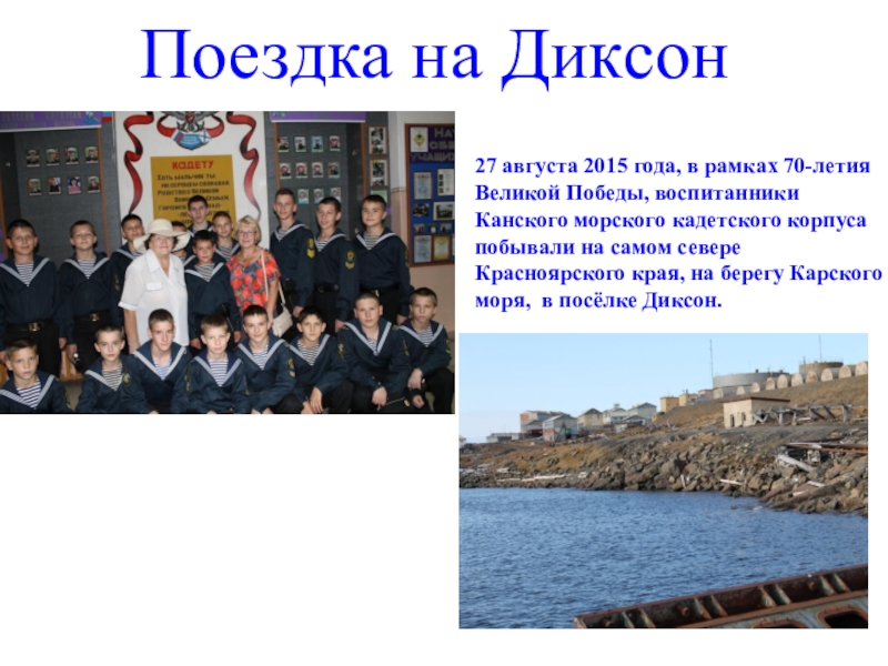 воспитанники Канского морского кадетского корпуса побывали на самом севере Красноярского края, на берегу Карского моря, в посёлке Диксон.