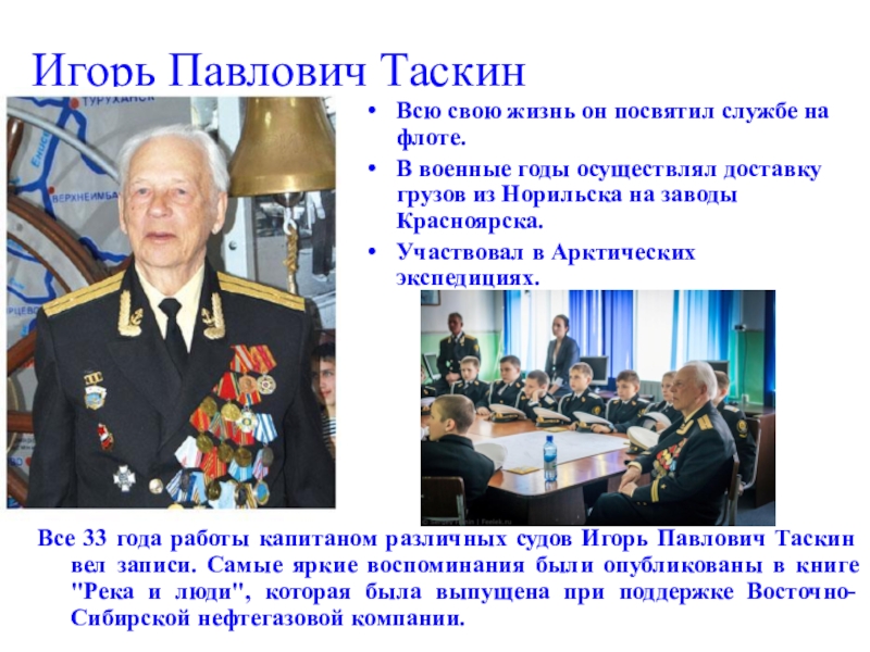 В военные годы осуществлял доставку грузов из Норильска на заводы Красноярска.