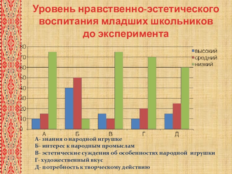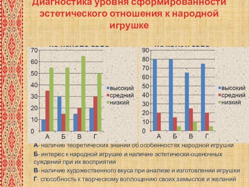 Б- интерес к народной игрушке и наличие эстетически-оценочных суждений при их восприятии