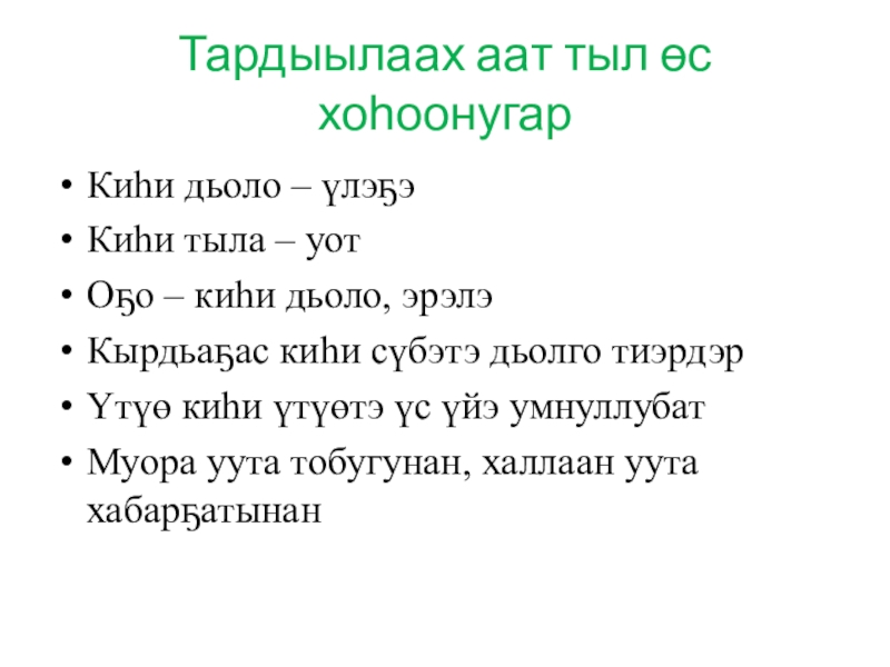 дьиэҥ, дьиэтэ, дьиэбит, дьиэҕит, дьиэлэрэ
