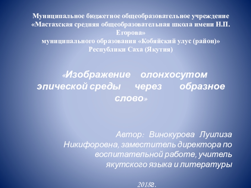 Автор: Винокурова Луилиза Никифоровна, заместитель директора по воспитательной работе, учитель якутского языка и литературы