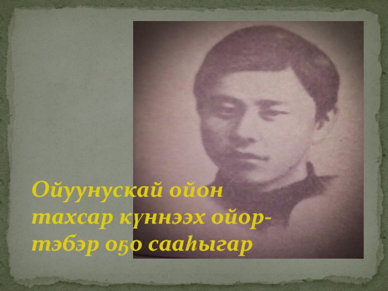 Слайд 3Ойуунускай ойон тахсар күннээх ойор- тэбэр оҕо сааһыгар