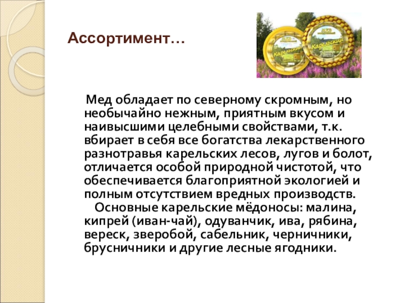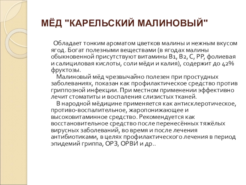 Слайд 10МЁД "КАРЕЛЬСКИЙ МАЛИНОВЫЙ"