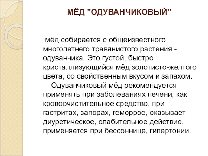 Слайд 19 МЁД "ОДУВАНЧИКОВЫЙ"