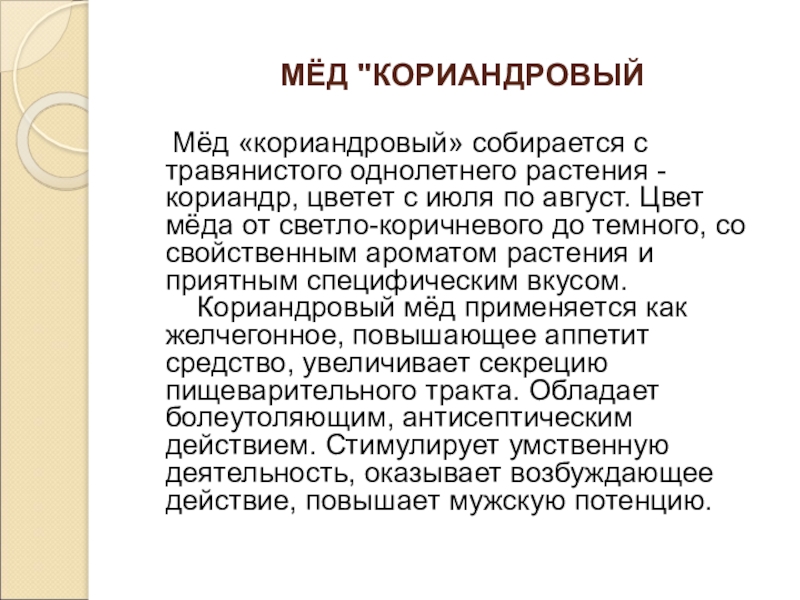 Слайд 17 МЁД "КОРИАНДРОВЫЙ