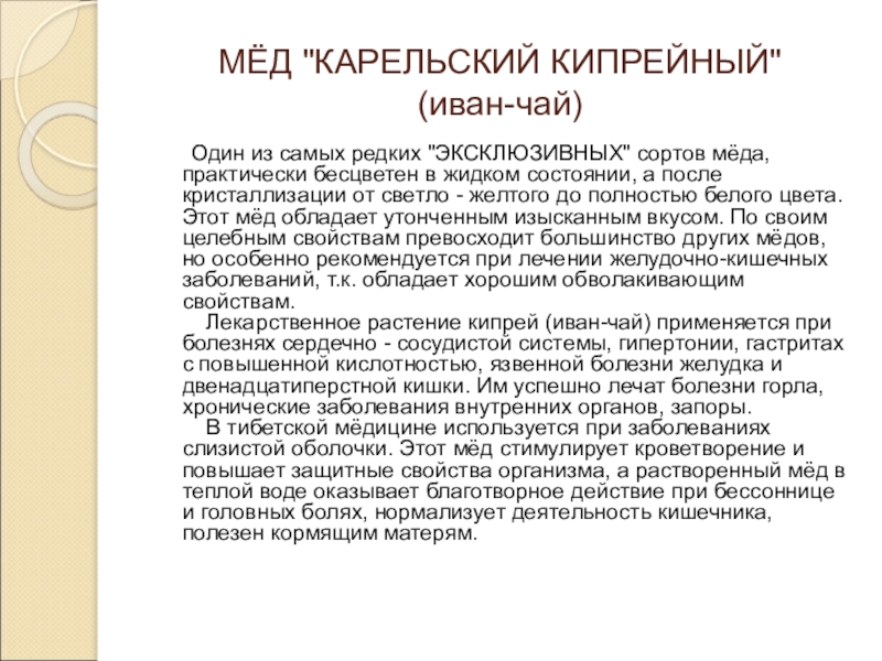 Слайд 11МЁД "КАРЕЛЬСКИЙ КИПРЕЙНЫЙ"