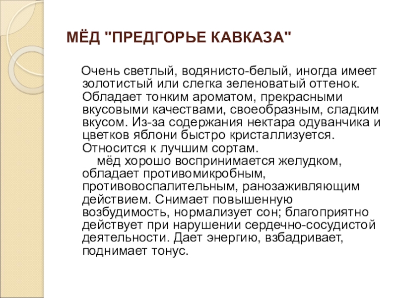 Слайд 21МЁД "ПРЕДГОРЬЕ КАВКАЗА"