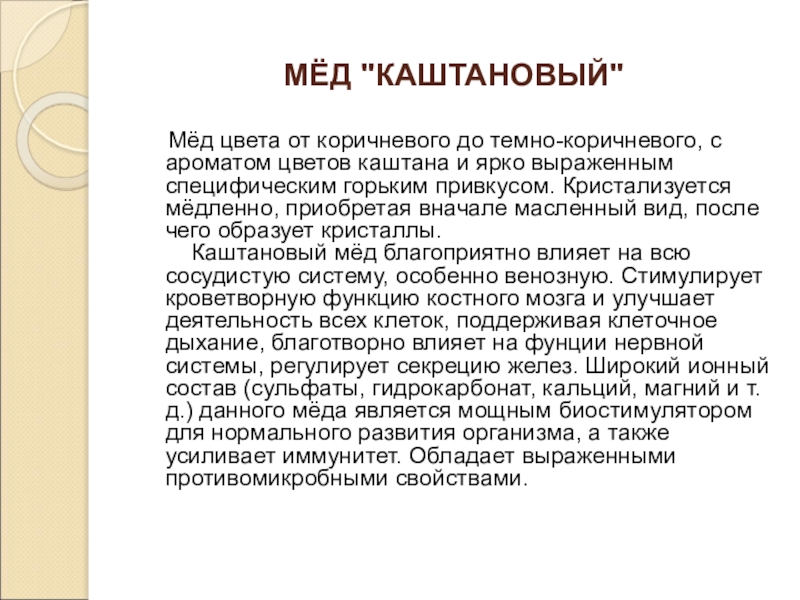 Слайд 15МЁД "КАШТАНОВЫЙ"