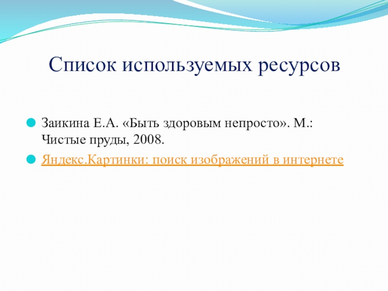Заикина Е.А. «Быть здоровым непросто». М.: Чистые пруды, 2008.