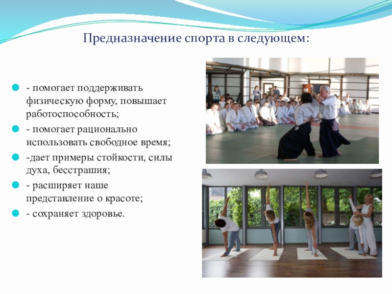 - помогает поддерживать физическую форму, повышает работоспособность;