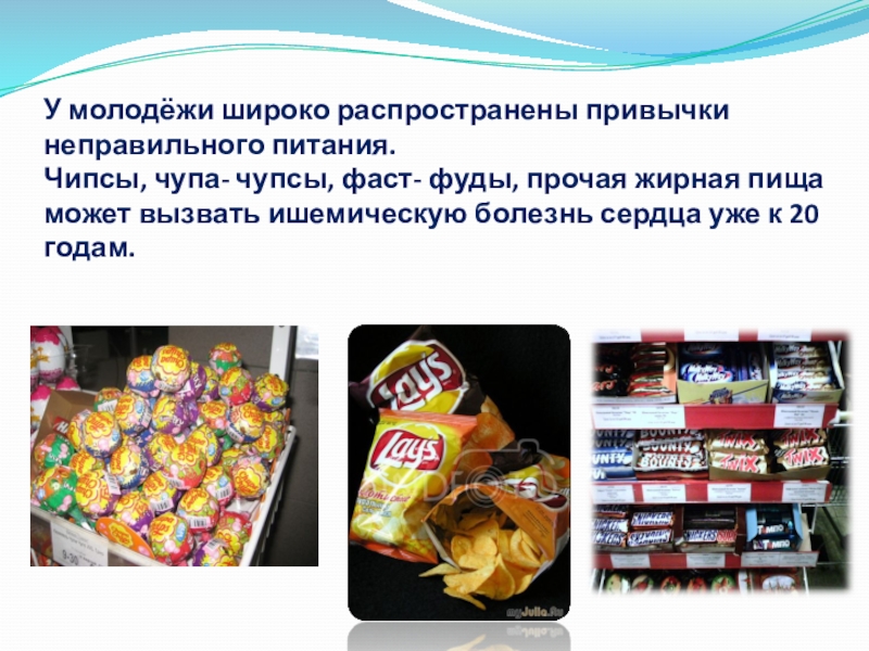 Слайд 19У молодёжи широко распространены привычки неправильного питания.