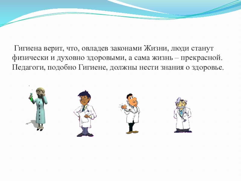 Слайд 5 Гигиена верит, что, овладев законами Жизни, люди станут физически и