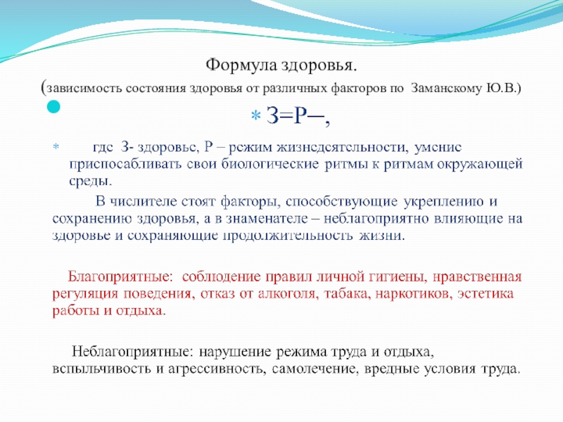 (зависимость состояния здоровья от различных факторов по Заманскому Ю.В.)